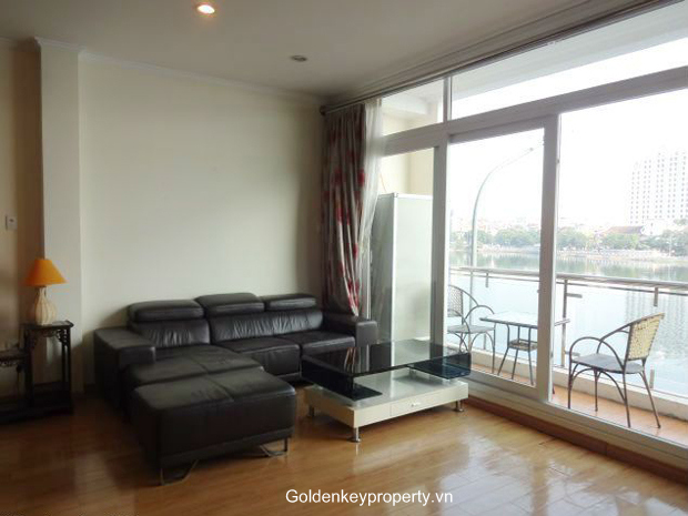 Apartment rental is located on the road along Westlake, Tay Ho district, Hanoi with beautiful lake view from living room and balcony. The apartment composed of living room and dinning room with fully equipped kitchen, separated bedroom, bathroom with shower. The building has elevator, motorbike parking. The rent is inclusive of internet wifi, cable TV and using water.