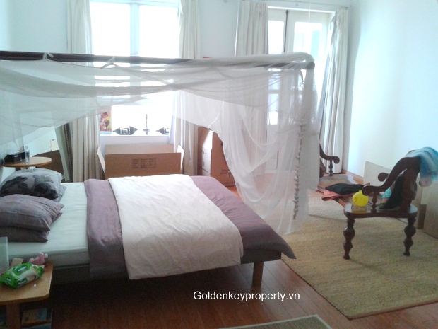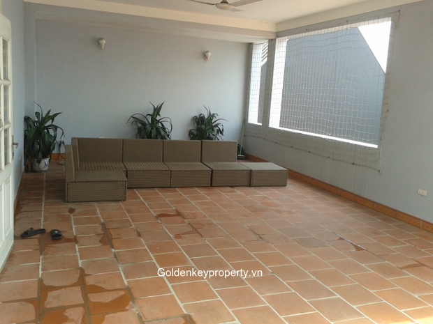Modern style house for rent in Xuan Dieu area, Tay Ho district, Hanoi. Land area 180 sqm, build 4 floors with total using 350 sqm. it has indoor swimming pool, a spacious and open design living room, dining room, a good kitchen cupboard with lots of storage space, well equipped with a built-in oven and a dish washer, a big refrigerator. The house has 04 bedrooms each with its own bathroom, plus a toilet in the lounge area and one shower in the pool area, parking space for motorbike; one store room, a large terrace with lake view to West Lake.