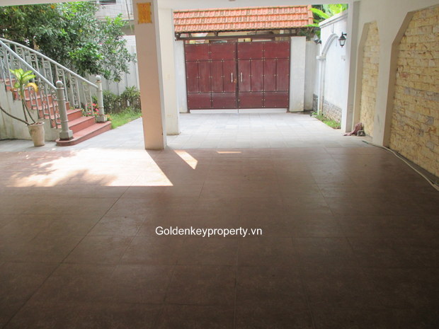 This villa for rent in Tay Ho has 400m2 land areas with 3 stories building has 350 m2 floor living, there is a swimming pool and big beautiful courtyards in front and back side of the villa so it is open surrounding, the courtyard includes table and chair for enjoying and lots of space for children playing, located in a very good location on To Ngoc Van street, Tay Ho District, it is very easy car access and close to facilities for daily life, good neighborhood, walking distance to the lake.